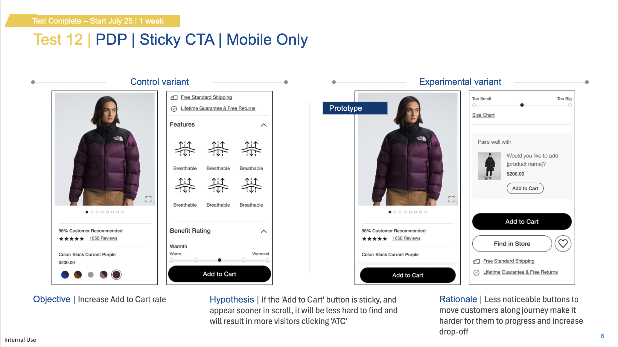These variations were then presented to the brand representative, who selected the preferred design for future A/B testing.
