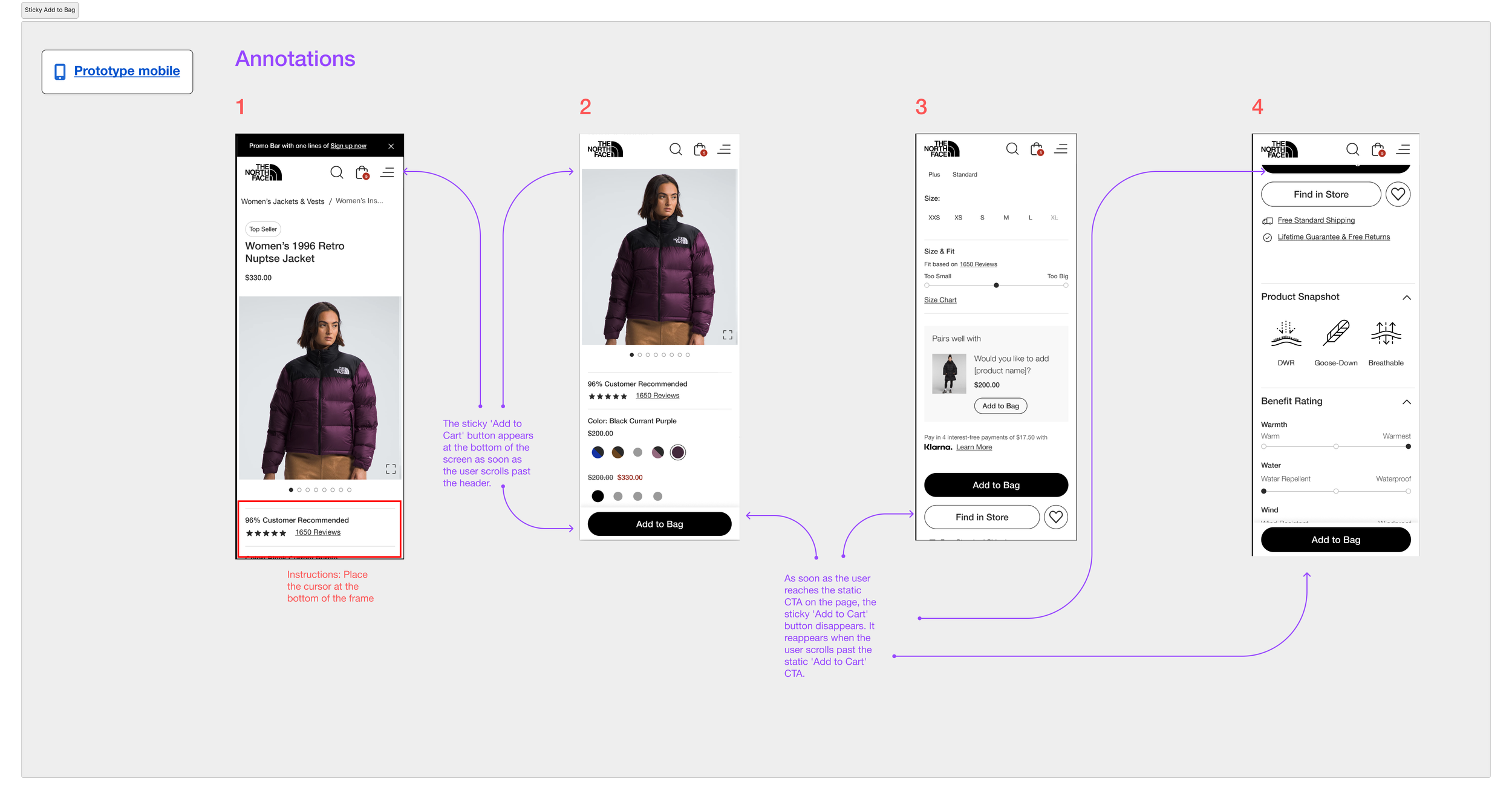 Adding Sticky CTA to PDP for both brands and creating annotations for developers. Additionally, I created prototypes for the best communication.